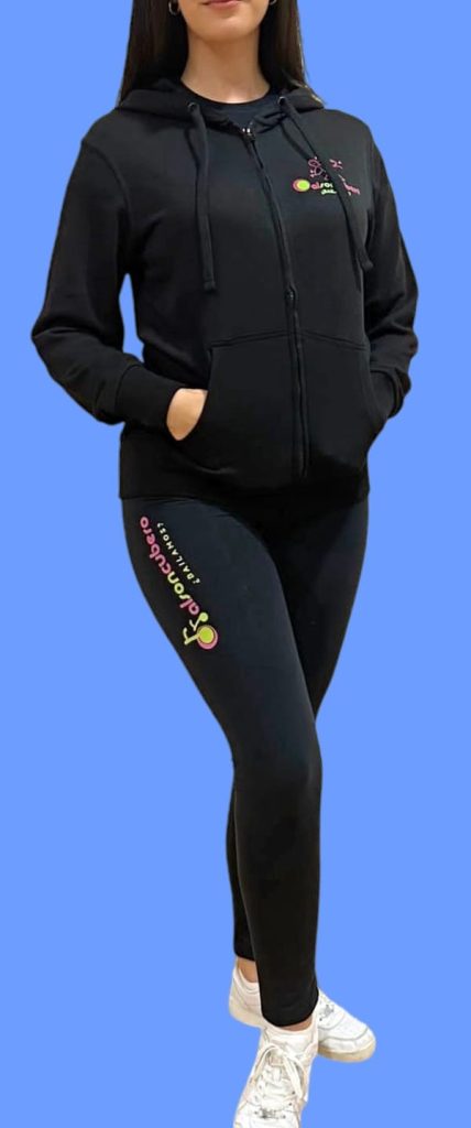 Malla femenina, confeccionada en mezcla de algodón y poliéster. Color negro, marcada en pierna con logo de la Academia de Baile Al Son Cubero.
